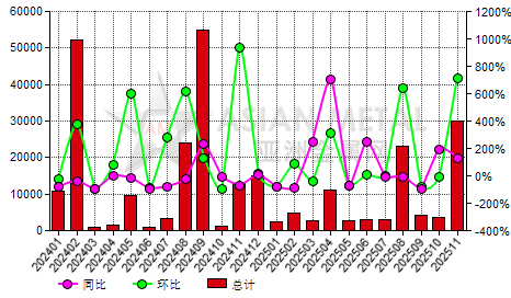 中国2025年11月份未锻轧铋(Bi>99.99%)出口量环比上涨79.70%
