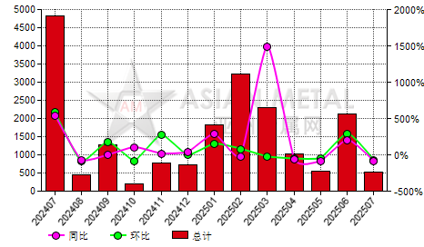 比利时2025年6月份萤石(CaF>97%)进口量环比增长169.16%