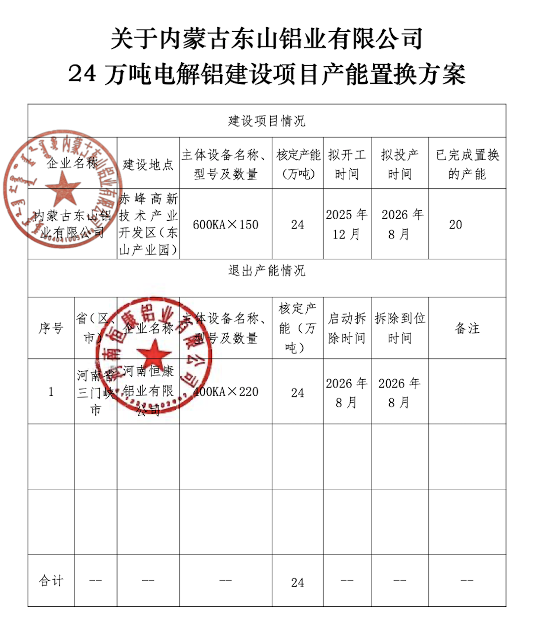 亚洲金属网版权所有内蒙古自治区工信厅现将东山铝业24万吨电解铝建设项目产能置换方案予以公示